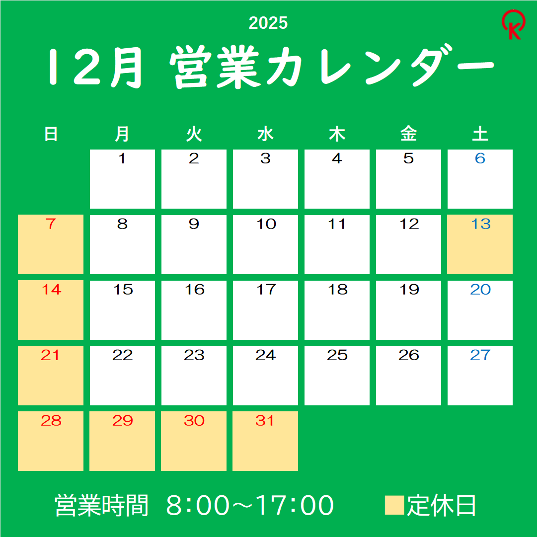 高陽建設工業株式会社 営業カレンダー 2025年12月