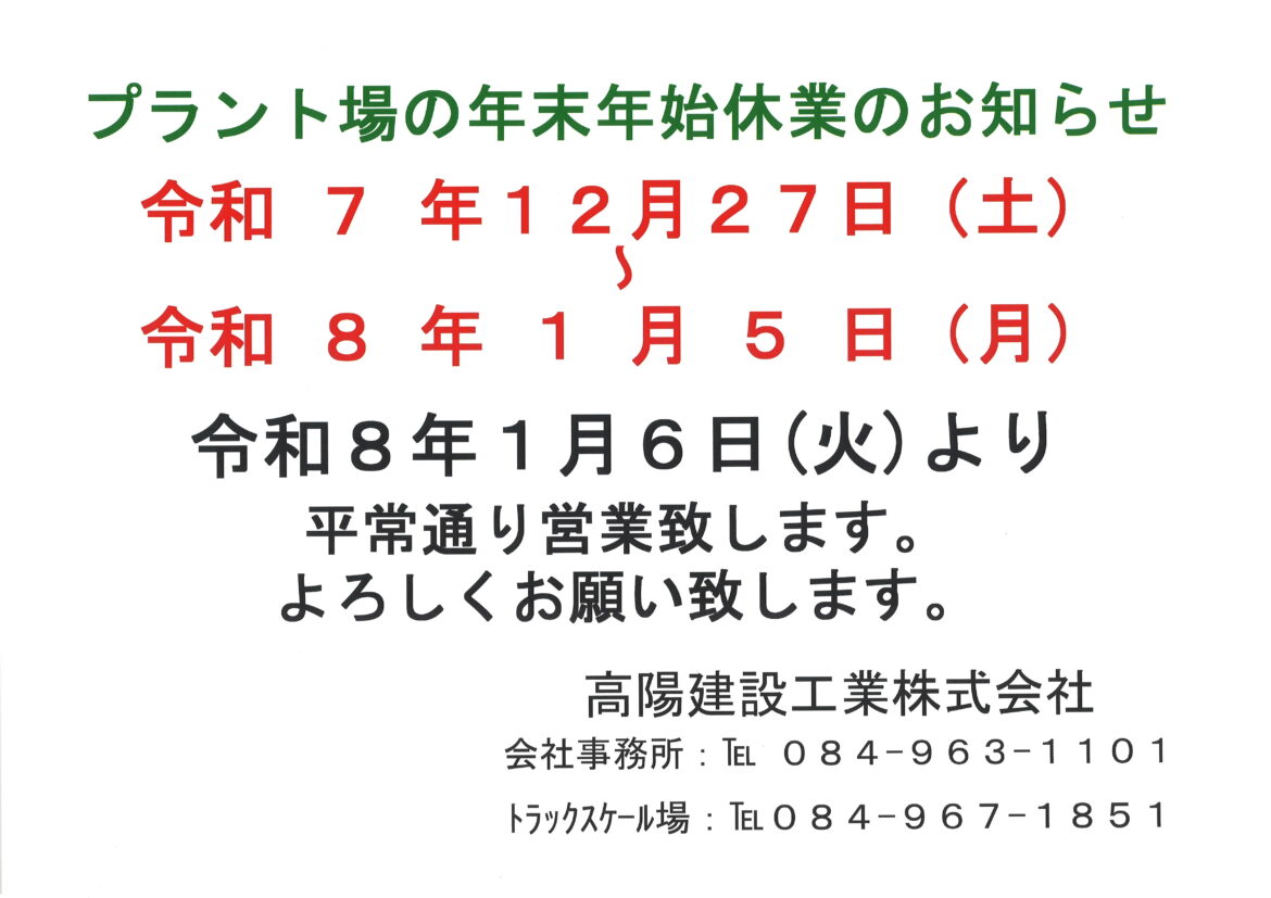 高陽建設工業株式会社 年末年始休業のお知らせ
