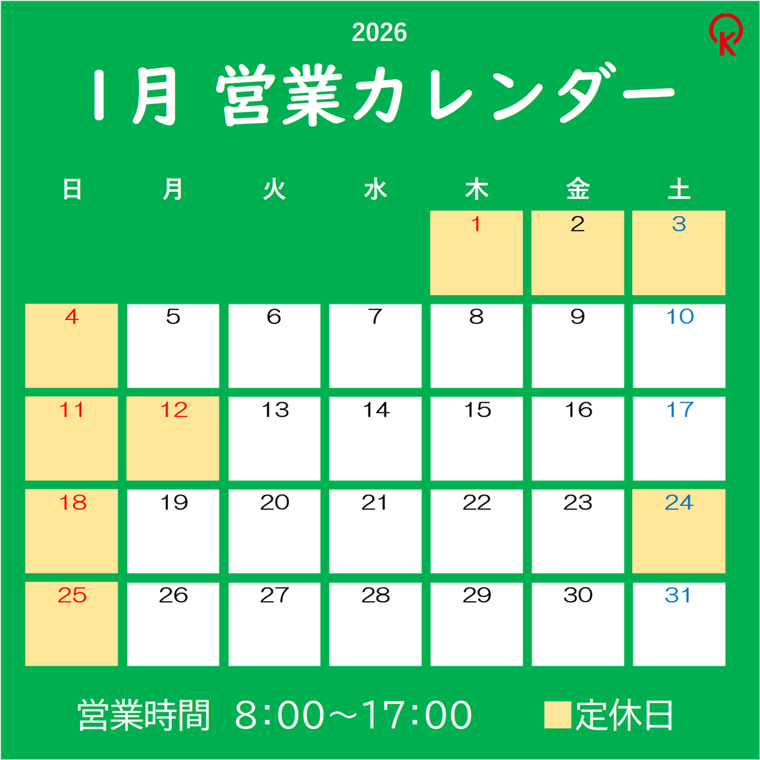 高陽建設工業株式会社 営業カレンダー 2026年1月